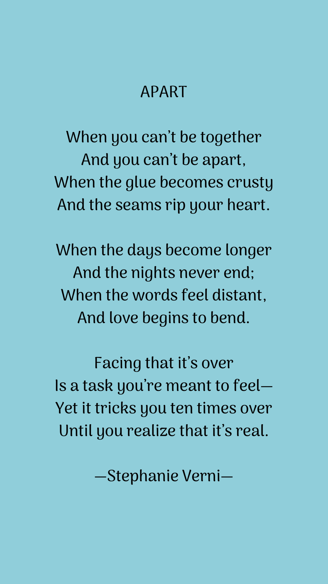 I’ve always written poetry for fun, and I enjoy writing poems that uncover emotion. And while I’ve only published one small collection of poems to date in The Postcard, I continue to write them and keep them to myself…just for these purposes.
